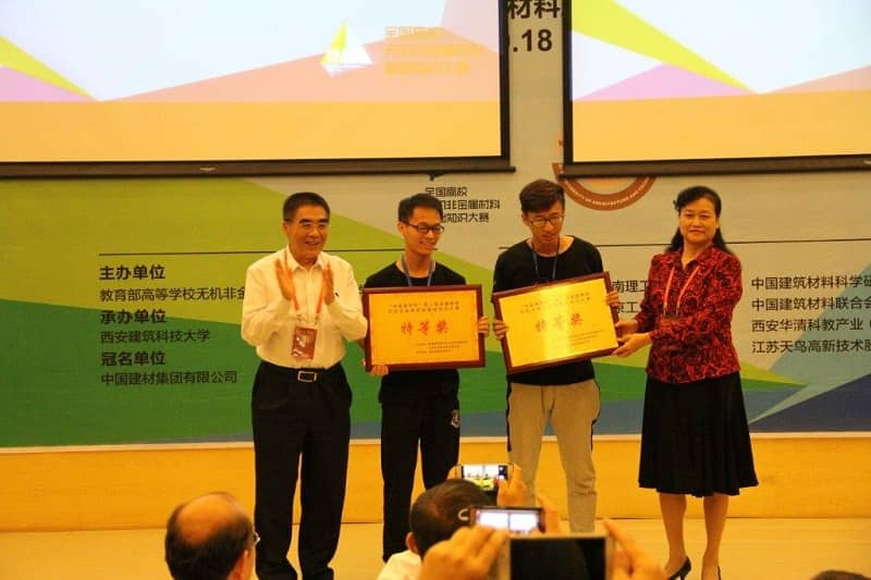 姚燕在致辭中介紹了中國建材集團、中國建材總院和中國建材聯合會科教委的現狀、發展目標。她講到,中國建材集團是中國最大、世界領先的綜合性建材產業集團,中國建材總院是中國建材與無機非金屬領域規模最大、實力最強的科研開發中心,中國建材聯合會科教委是由我國建材及相關領域具有豐富經驗和知識淵博的專業技術人員、教育工作者組成的行業科技、教育參謀咨詢服務機構,這三家單位都非常支持我國高等學校無機非金屬材料工程專業教育教學事業的發展,希望更多的材料學子學有所成后,積極投身到中國建材行業,為行業發展添磚加瓦。大賽閉幕式上,徐德龍院士和姚燕教授為獲得特等獎的代表隊頒發了獎牌。