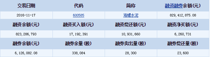 2016-11-18 13:43:38 來源:海螺水泥,融資融券,余額