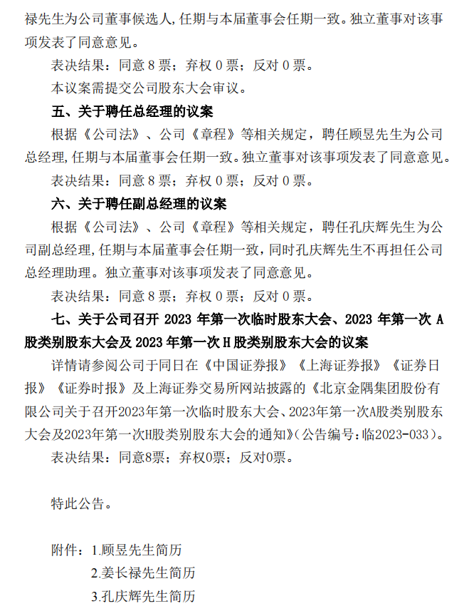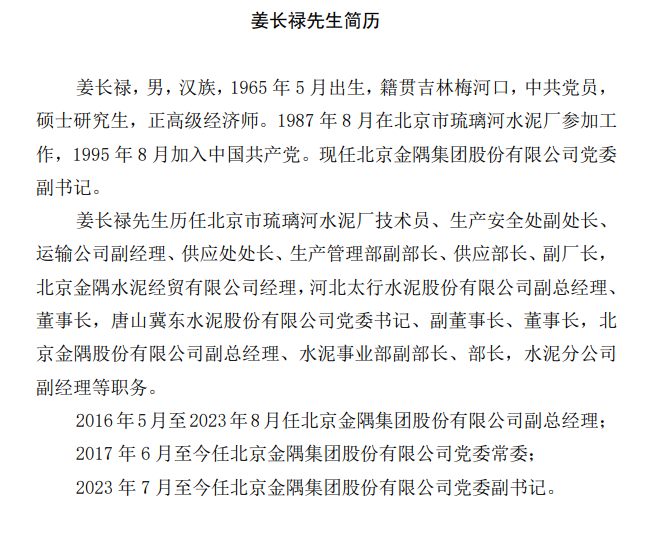 金隅冀東24日晚間公告,提名顧昱先生、姜長祿先生為公司董事候選人。聘任顧昱先生為公司總經(jīng)理,聘任孔慶輝先生為公司副總經(jīng)理,任期與本屆董事會(huì)任期一致,同時(shí)孔慶輝先生不再擔(dān)任公司總經(jīng)理助理。