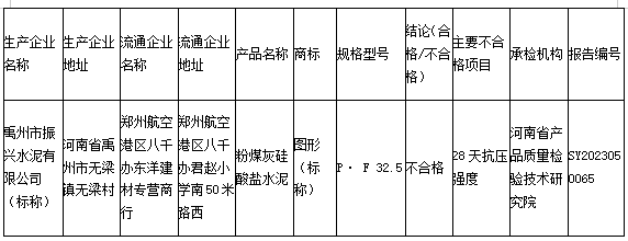 8月25日,河南鄭州市場監管局通報,標稱為禹州市振興水泥有限公司1批次水泥抗壓強度不合格。