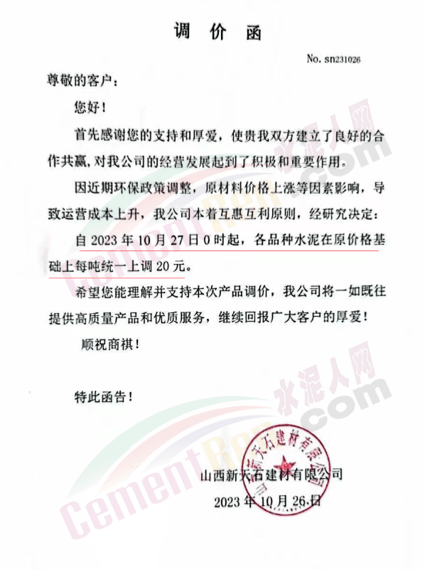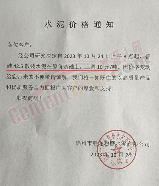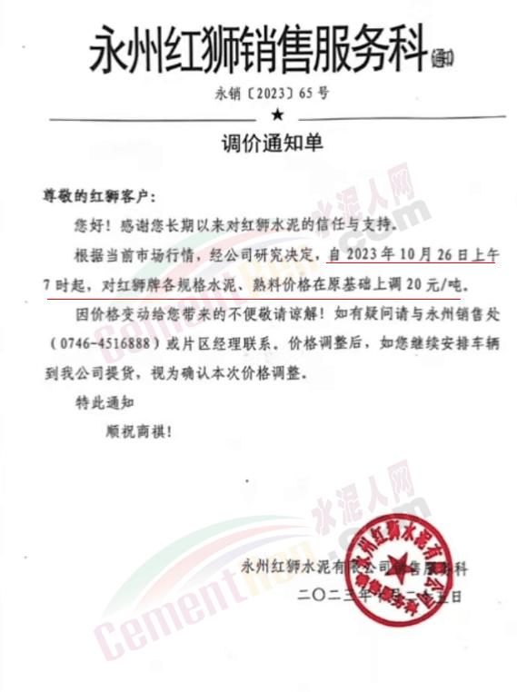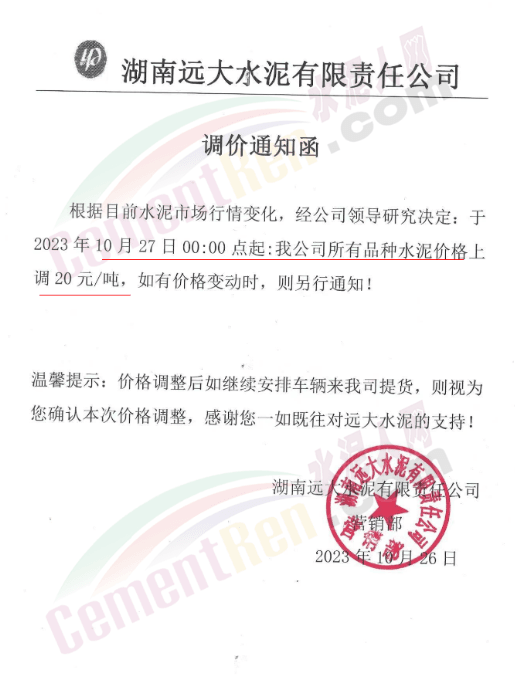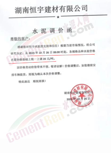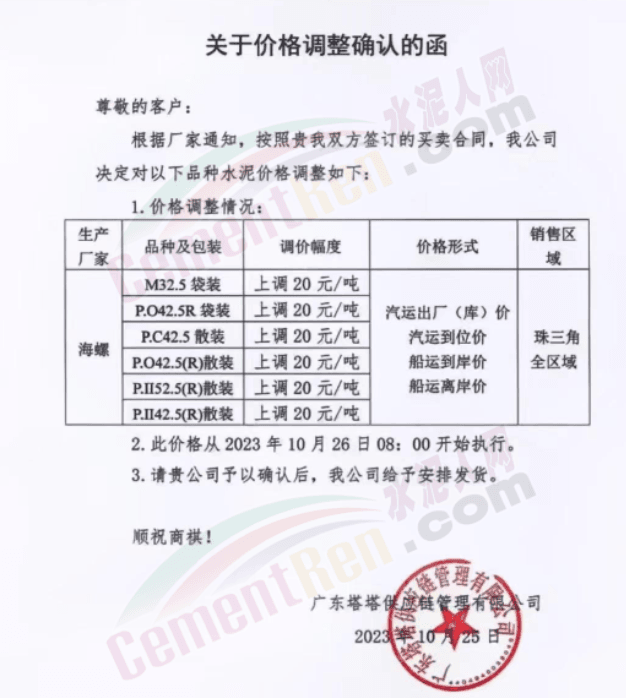 近來受原材料價格上漲和經濟政策的刺激,廣東、湖南、山西、陜西多地包括海螺水泥在內的多家品牌企業通知上調報價。廣東東莞鵬潤建材有限公司通知,根據目前的市場情況,從10月26日8時起公司供應的海螺全品項散裝水泥上調20元/噸。