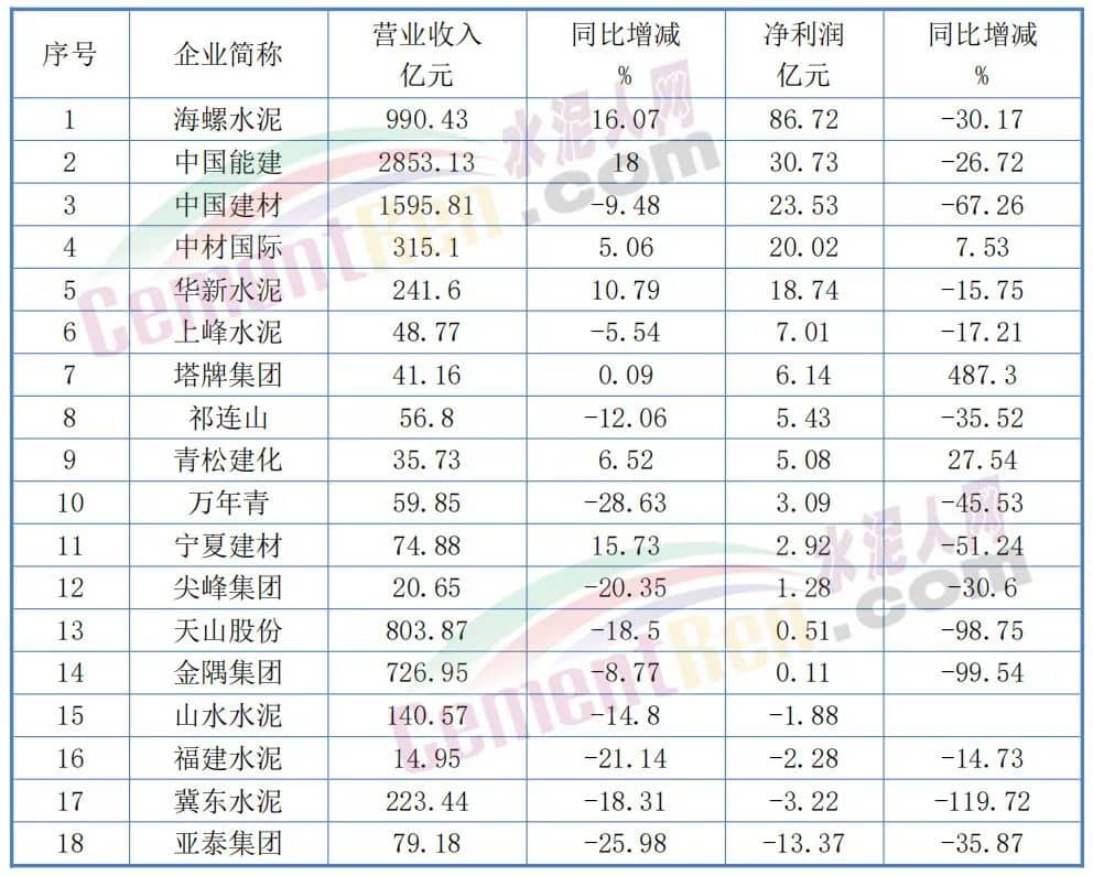 海螺水泥3季度利潤86.72億元,占全行業其他企業利潤近50%